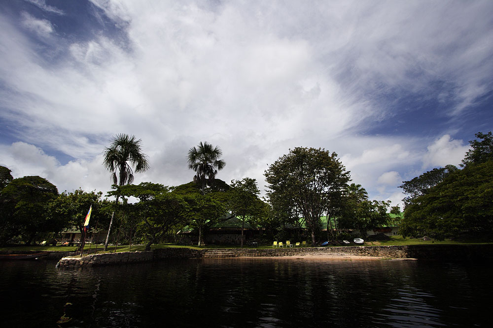 Het is hier momenteel regenseizoen, wel fijn, want daardoor staat het water in de rivieren hoog zodat de meeste stroomversnellingen verdwijnen. Iedere dag heb je wel een flinke bui, maar verder is het wel droog, warm vochtig en wisselend bewolkt, ook niet vekeerd met de tropische zon die de hele dag staat te branden. De wolken zorgden de eerste dag voor de mooiste zonsondergang ooit. ’s Nachts zorgde ze voor een vuurwerk van bliksemschichten.